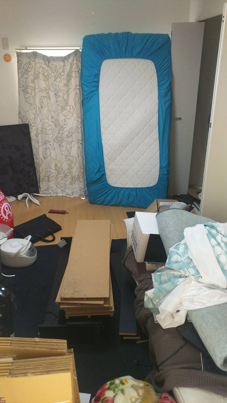 マットレス・ベッド・冷蔵庫・衣類・細々入った段ボール・テレビ・などを